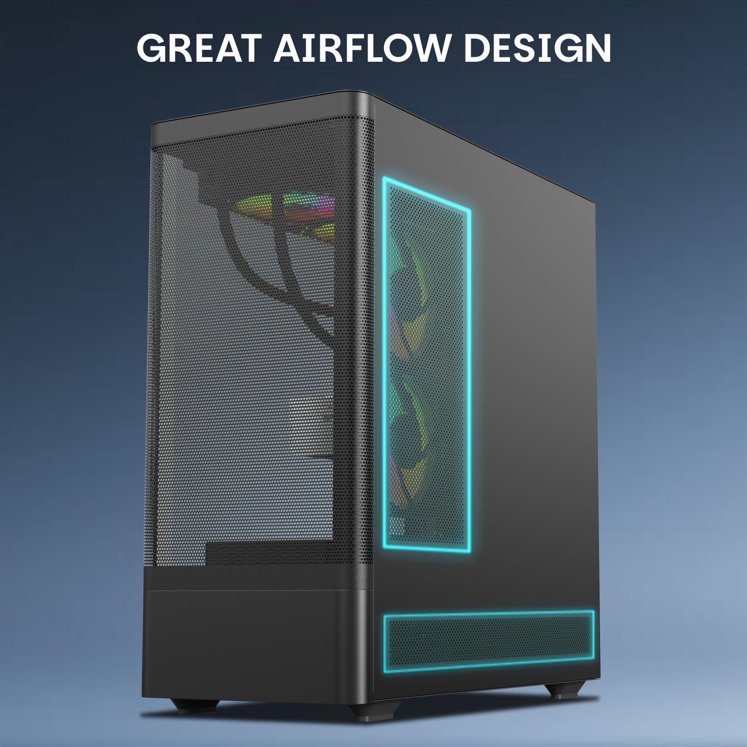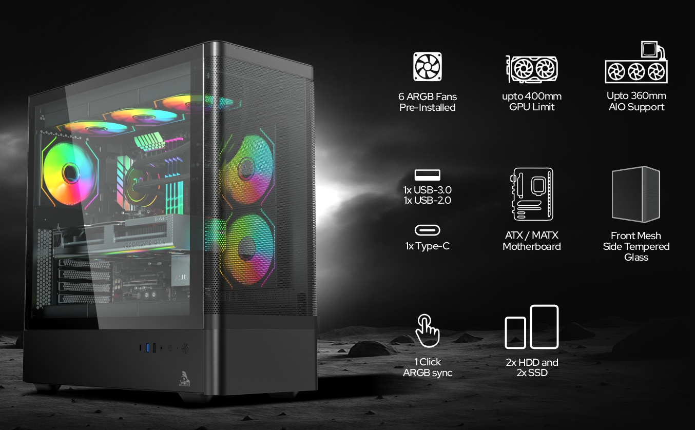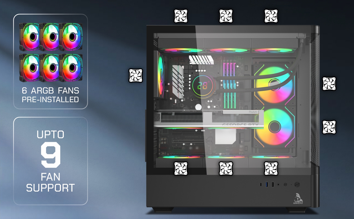 • Premium Cooling : 6x ARGB infinity mirror fans & fine mesh front panel.