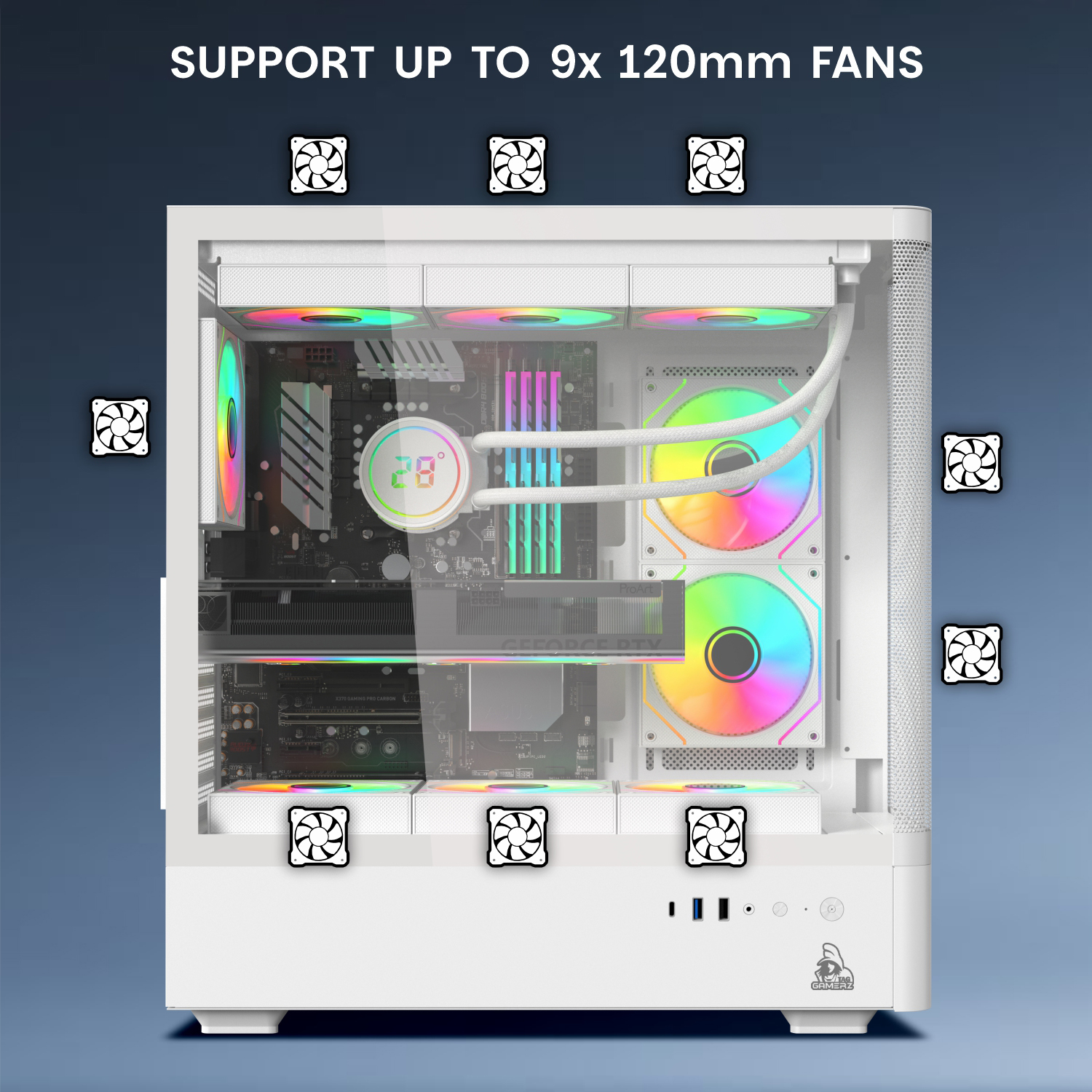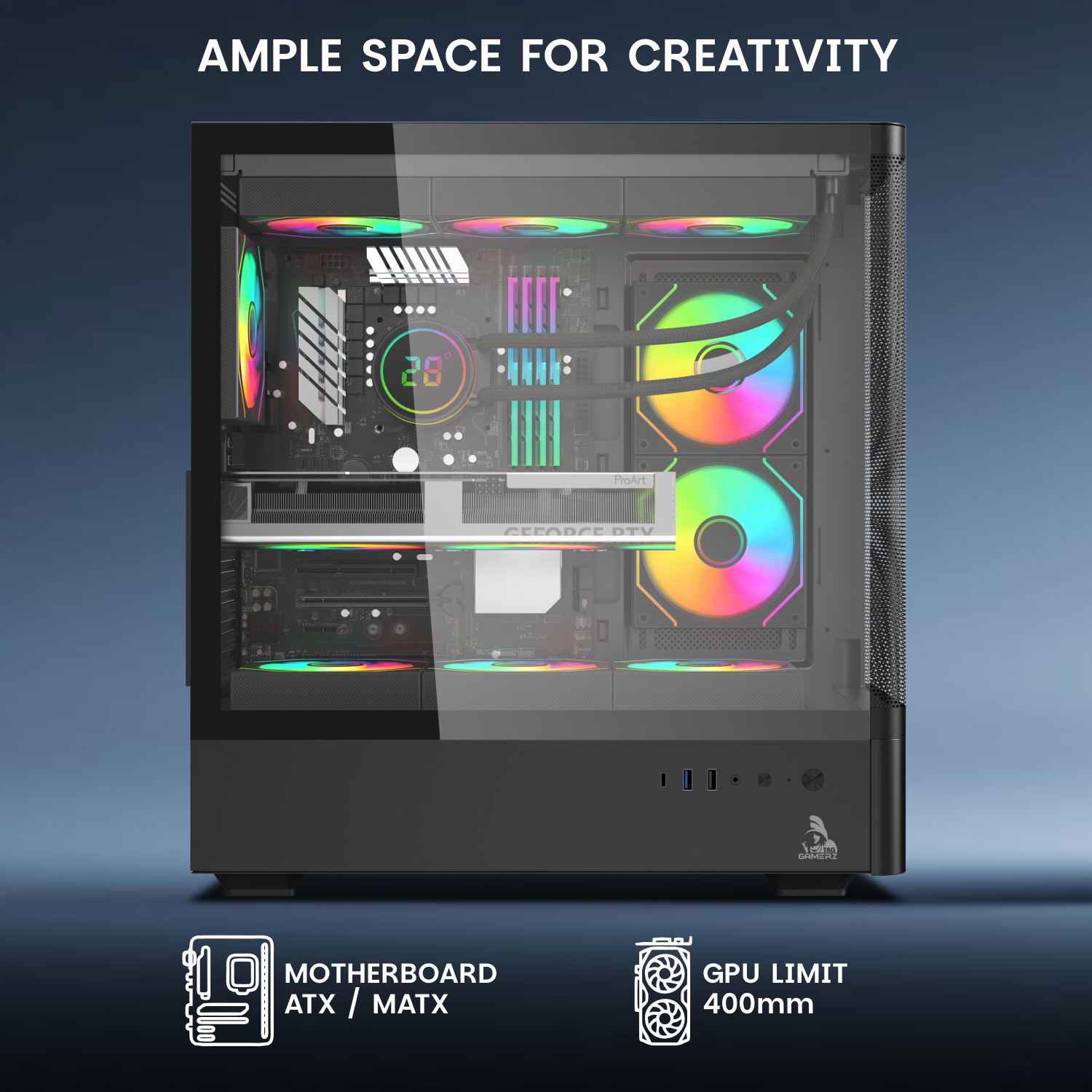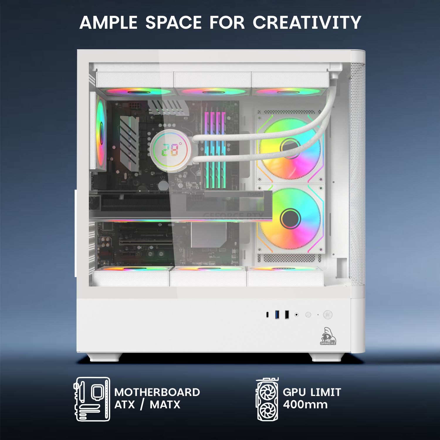• Premium Cooling : 6x ARGB infinity mirror fans & fine mesh front panel.