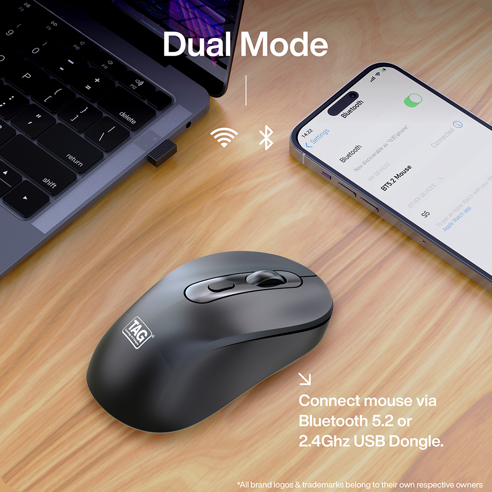 • Dual Wireless Connectivity : Supports 2.4GHz wireless for stable, long-range performance up to 10 meters and Bluetooth 5.2 for seamless multi-device pairing.
