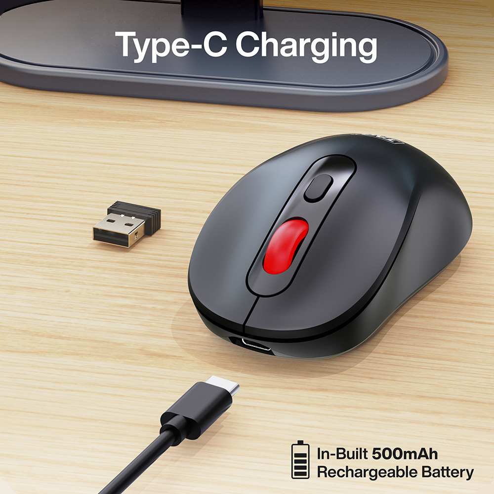 • Rechargeable Battery : Built-in 500mAh battery provides up to 72 hours of use and quickly recharges via a USB Type-C port.