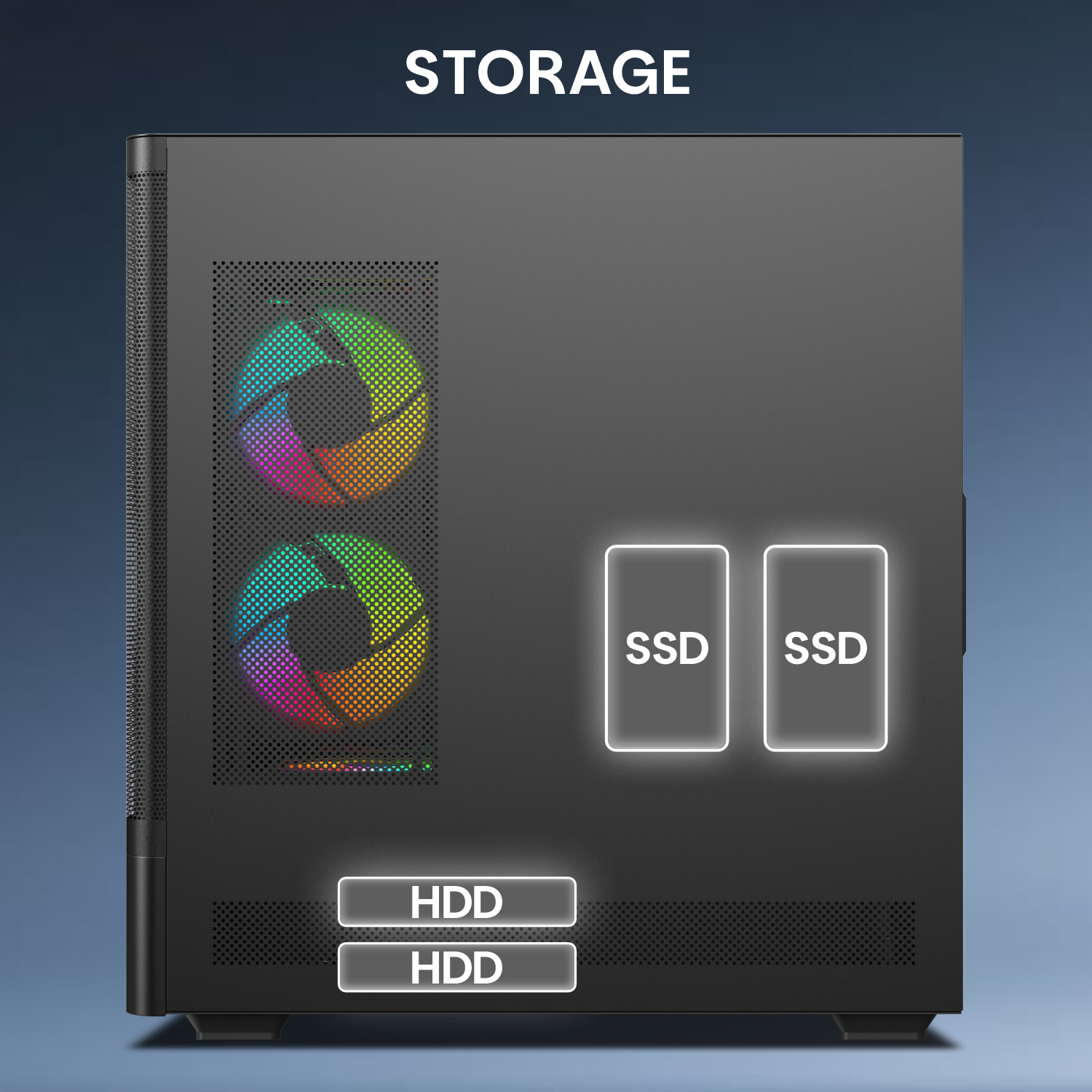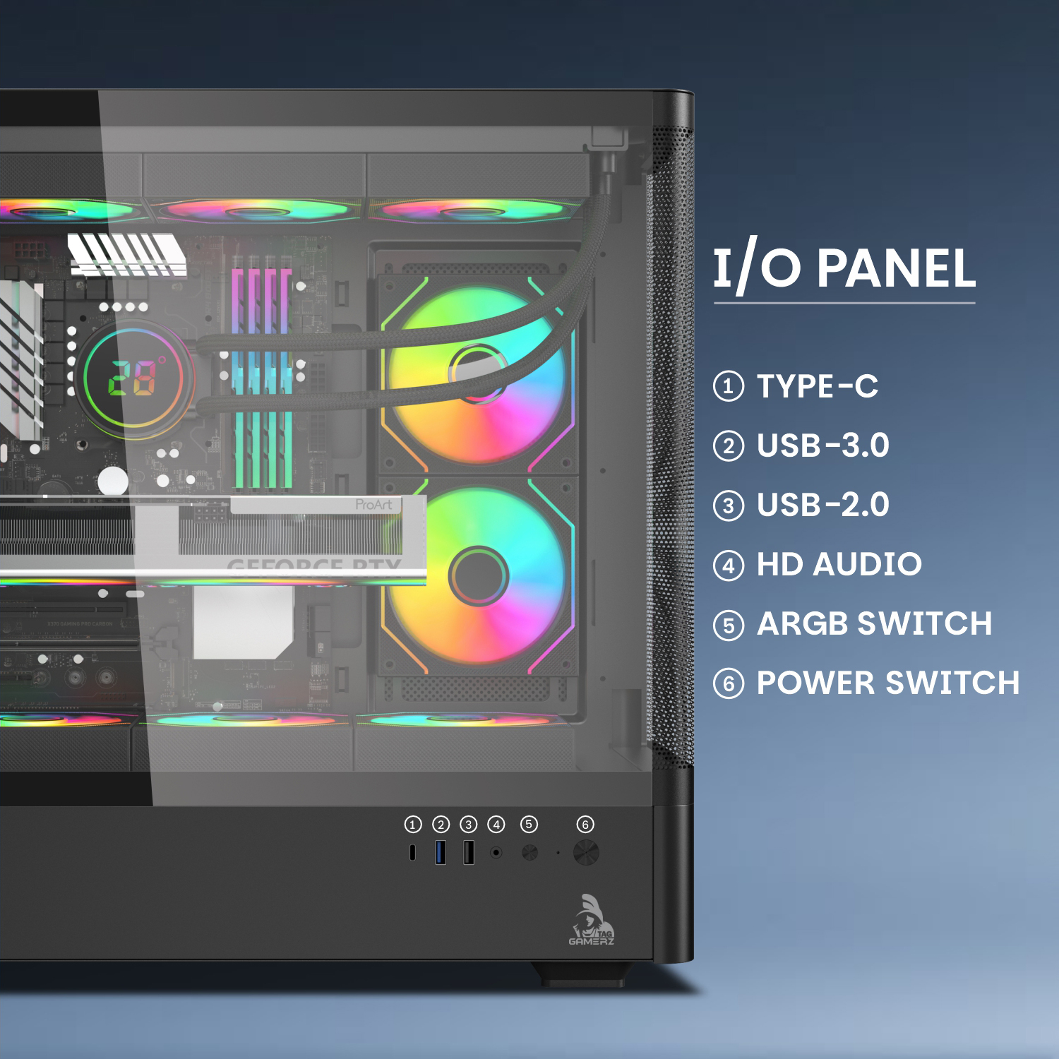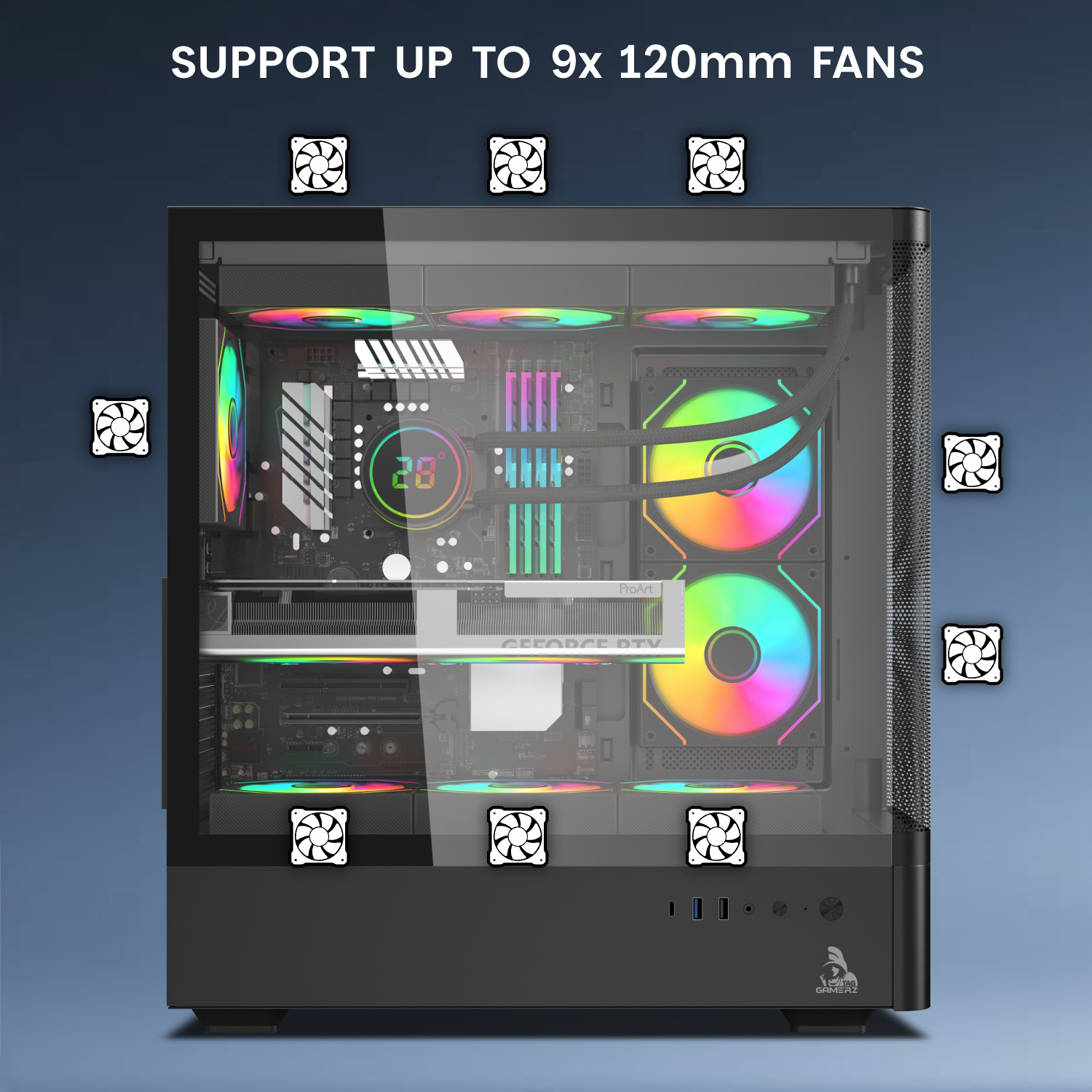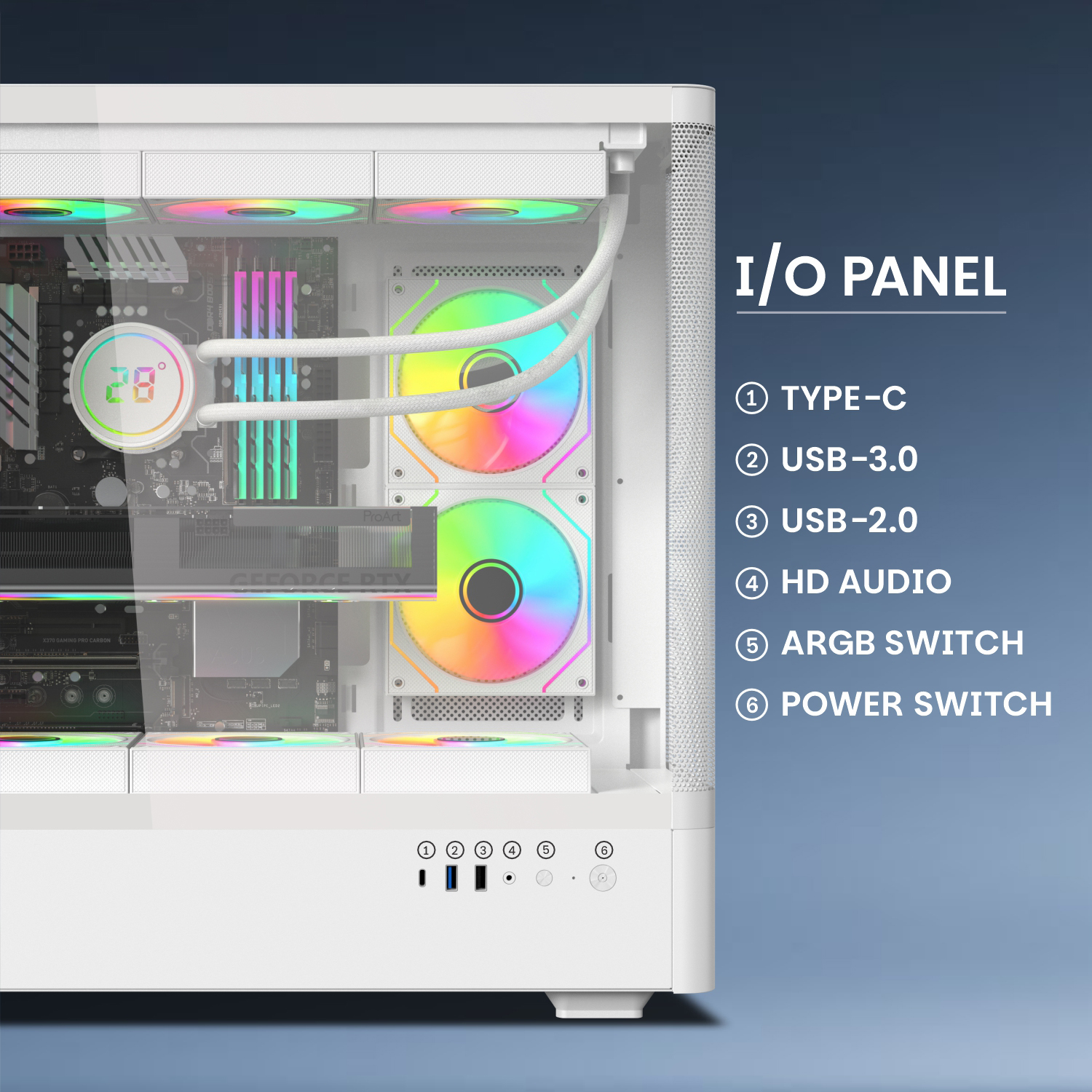 • Premium Cooling : 6x ARGB infinity mirror fans & fine mesh front panel.
